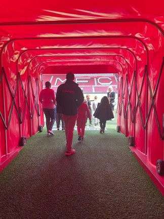 The highlight for many came next, when we got to go through the game day tunnel onto the edge of the pitch. We all got to pretend we were football stars ready to play in an important match before entering the media suite to sit at the podium where the players and coaches address journalists following each match.